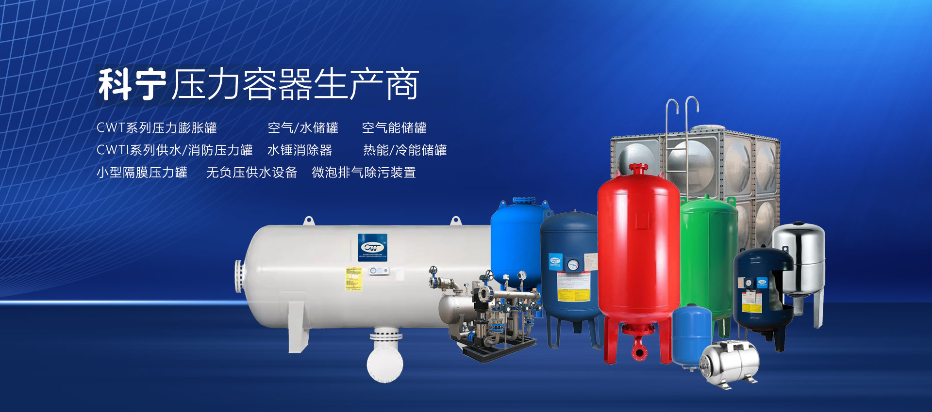 查看詳情 +壽光市科寧壓力容器(壽光)有限公司是專(zhuān)業(yè)從事壓力膨脹罐、空氣/水儲(chǔ)罐、空氣能儲(chǔ)罐、水錘罐、熱能/冷能儲(chǔ)罐、無(wú)負(fù)壓供水設(shè)備穩(wěn)流罐、耦合罐的研發(fā)、制造、加工、銷(xiāo)售、維修;經(jīng)營(yíng)國(guó)家允許范圍內(nèi)的貨物與技術(shù)的進(jìn)出口業(yè)務(wù)。材質(zhì)有碳鋼、不銹鋼、雙相鋼等。產(chǎn)品主要用于:恒壓變頻供水設(shè)備、無(wú)負(fù)壓供水設(shè)備、供暖系統(tǒng)、太陽(yáng)能、地暖、消防、空氣能、空調(diào)、大型供水系統(tǒng)(防水錘)。起到節(jié)能、穩(wěn)壓、防水錘、蓄能、環(huán)保等作用,延長(zhǎng)水泵和管道系統(tǒng)的使用壽命,確保供水系統(tǒng)穩(wěn)定運(yùn)行...